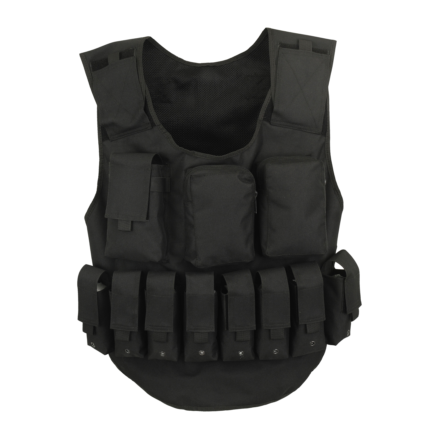 Polyester Mesh lining, Adjustable Velcro straps for sizing on Shoulders.